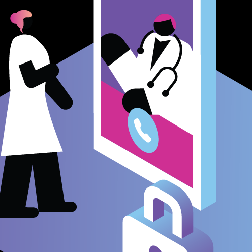 Verifica la identidad de los pacientes, realiza consultas virtuales, envía mensajes al personal médico y a los pacientes para mantenerlos informados, ofrece sesiones de vídeo en tiempo real seguras y mucho más.